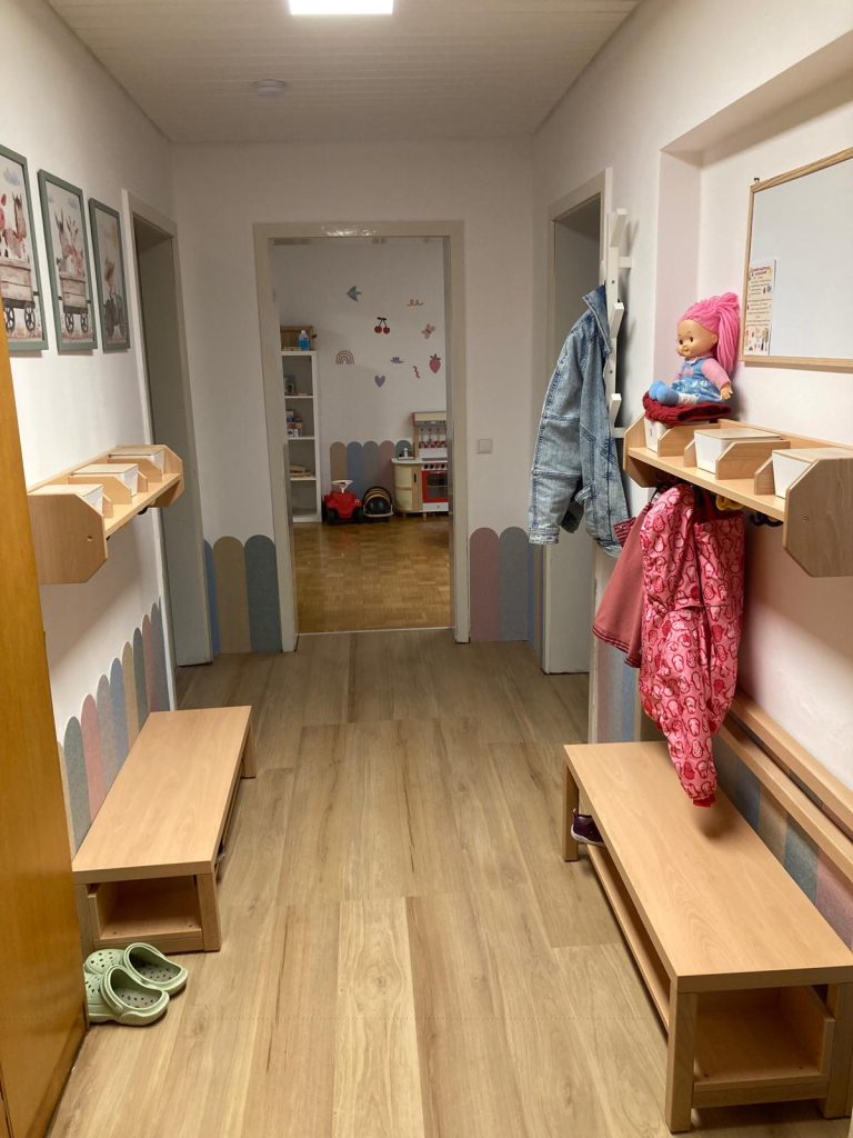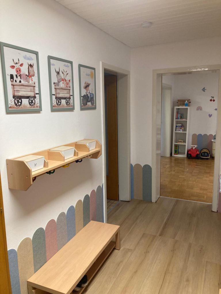 Die Kinderbetreuung findet in kinderfreundlichen Räumlichkeiten in Miedelsbach, Kleistweg 7 statt. Die Räume sind hell, sicher und anregend: Eingangsbereich, ein Gruppenraum mit Spiel- und Leseecke, ein Essbereich, ein Schlafraum, ein Sportraum mit Wickelbereich, ein Bad mit separater Toilette, eine Küche und ein privater Außerbereich mit Sandkasten und kleinen Kletterelementen.Der Kooperationspartner, die Stadt Schorndorf, mietet die Räumlichkeiten und stellt sie uns zur Verfügung.